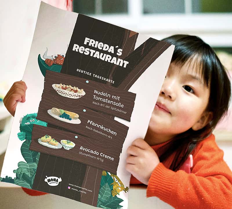 Taucht zusammen mit euren Eltern, ein in die Geschichte von Mona & Risotto und erlebt ein interaktives Abenteuer zum mitmachen, mitkochen und natürlich mitessen.