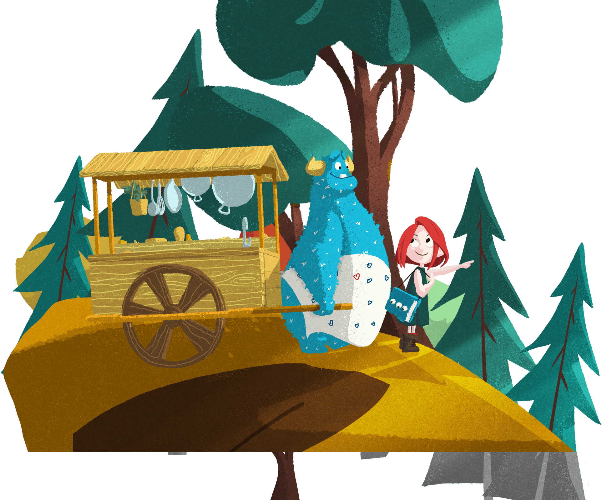 Kocht zusammen mit Mona & Risotto die Lieblingsgerichte der Waldmonster und lockt sie damit aus ihren Verstecken.